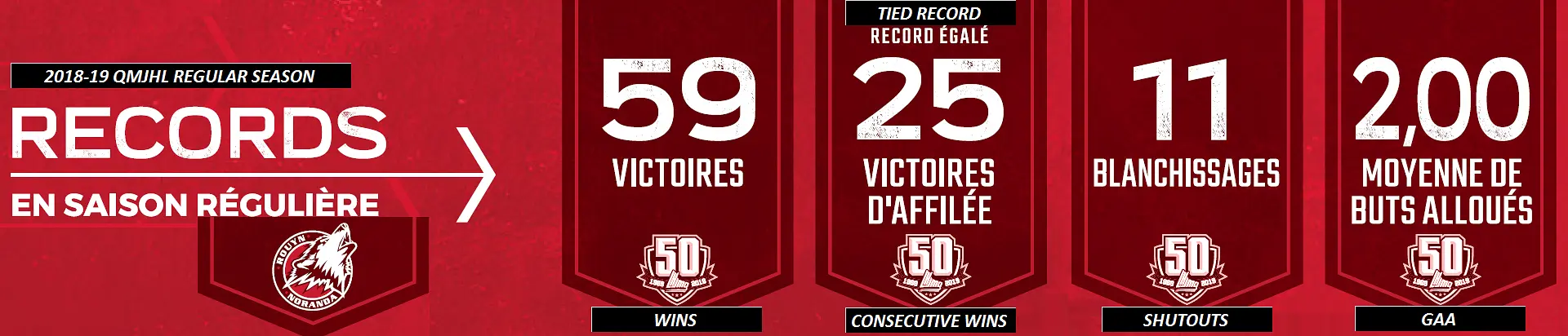 Meanwhile, goaltenders Zachary Emond (7 - tied league record) and Samuel Harvey (4) joined forces to ensure 11 shutouts for their team, another first in the QMJHL, which celebrated its 50th anniversary in 2018-19.