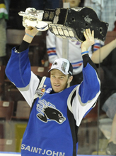 Mike Thomas - capitaine des Sea Dogs de Saint John en 2011, soulevant l'ultime honneur dans la Ligue Canadienne, la COUPE MEMORIAL!