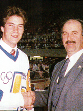 Wayne Gretzky (à droite) - le joueur étoile de la Ligue Nationale de Hockey achètera la franchise des Olympiques de Hull en 1984.
